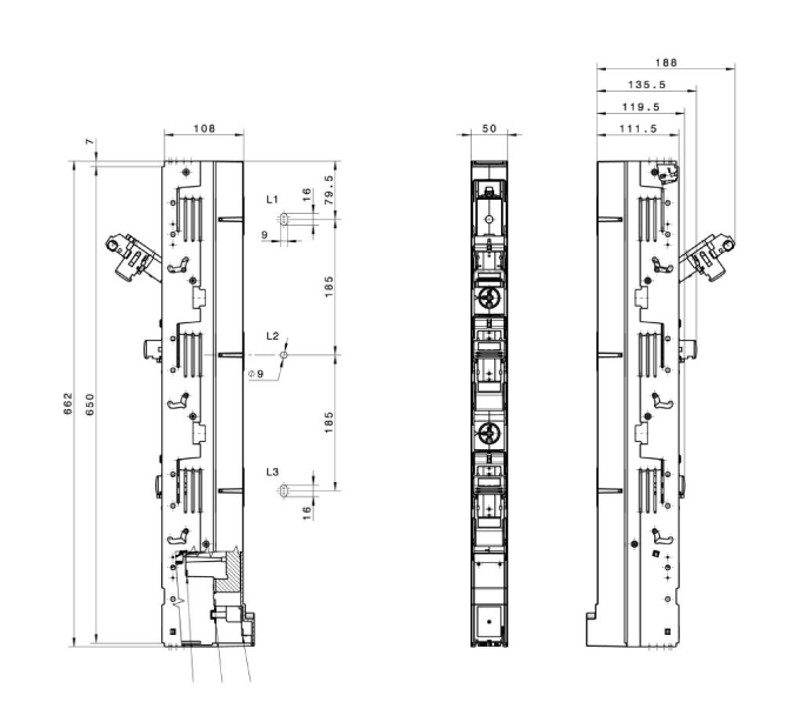 Tracon 500/690V AC, 220/400V DC, max.160A, 3P, 00 SL00-3X/185/F Függőleges biztosítós szakaszolókapcsoló, pólusonként nyitás 5997374183949
