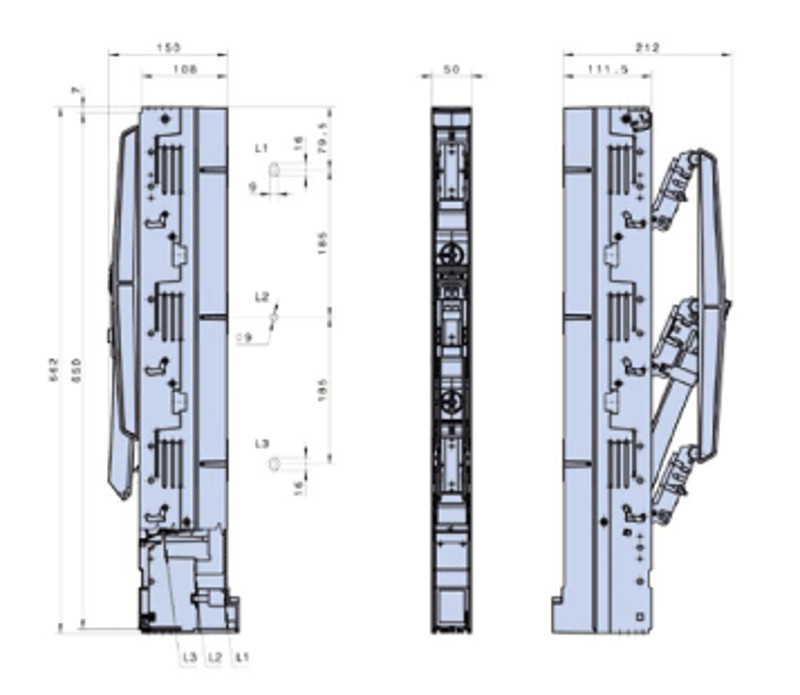 Tracon 500/690V AC, 220/400V DC, max.160A, 3P, 00 SL00-3X3/185/F Függőleges biztosítós szakaszolókapcsoló, egyszerre nyitás 5997374183987